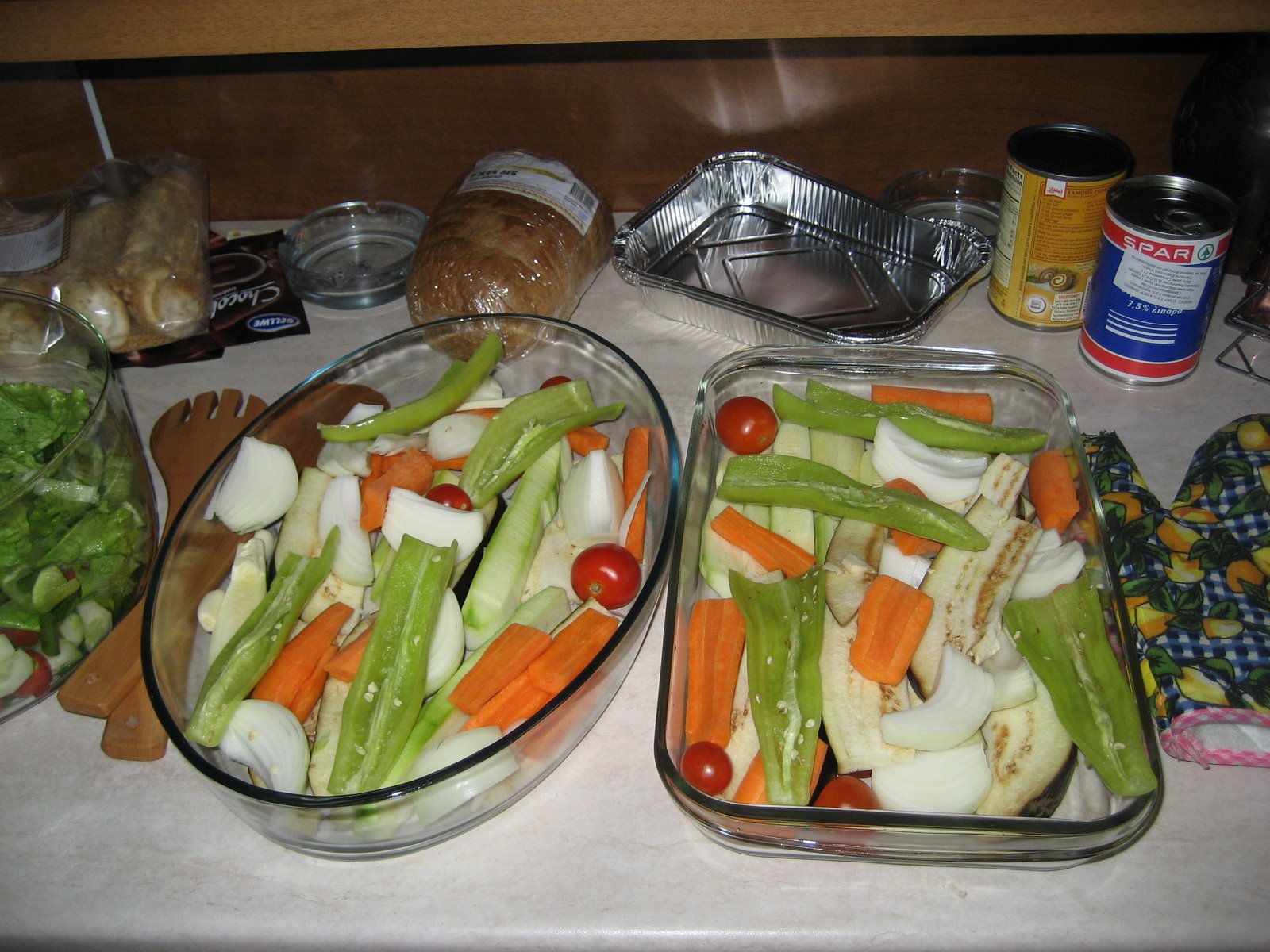 R. and I, being the resident Americans, were responsible for most of the food. We made roast vegetables, pumpkin pie, apple pie, mashed potatoes, and I cooked a turkey! J. was in charge of stuffing and did a very good job, although, as usual, there wasn't enough. Here are some pictures of the food: